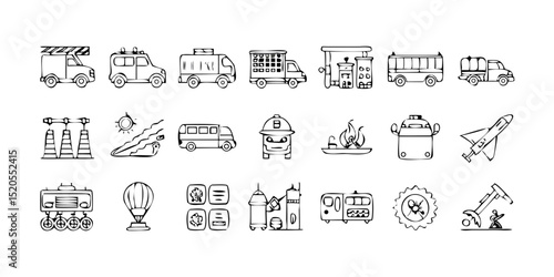 Public Service and Municipal Transport Line Icon Set – Vector Pictograms with Transparent Background