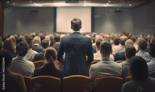 Public speaker talking in front of audience, Successful businessman holds business conference for the press, Speaker at Business Conference and Presentation