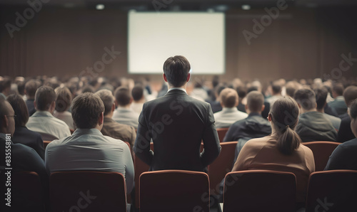 Public speaker talking in front of audience, Successful businessman holds business conference for the press, Speaker at Business Conference and Presentation