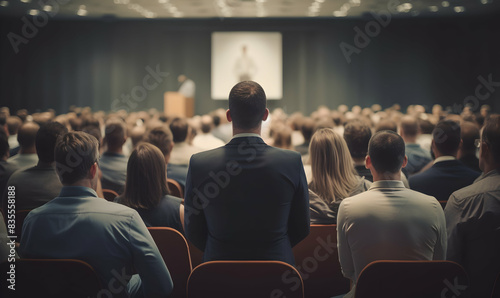 Public speaker talking in front of audience, Successful businessman holds business conference for the press, Speaker at Business Conference and Presentation