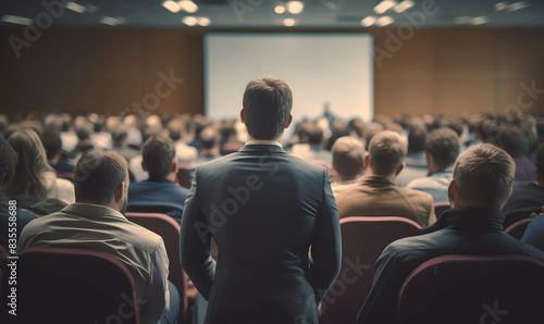 Public speaker talking in front of audience, Successful businessman holds business conference for the press, Speaker at Business Conference and Presentation