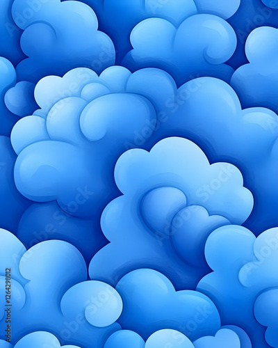 Puffy blue sky seamless backdrop, wallpaper. Weather pattern with cartoon clouds generative AI