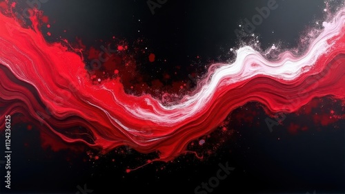 Pulsing electric waves. Bold ruby red and white waveforms dynamically spread over a sheer black surface. Impressive 4K UHD creation, maintaining focus and being noise-free