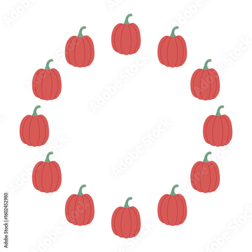 Pumpkin circle frame. Cozy autumn pumpkins. Vector flat illustration isolated on a white background