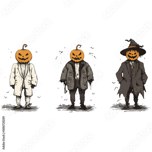 Pumpkin, pumpkin man, costume, Halloween festival, vector, transparent background, pumpkin, october, jack, celebration, scary, horror, evil, decoration, person, fun, pumpkin man sets, Various costumes