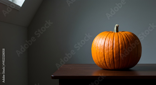 Pumpkin Still Life On Table Near Window Illuminating A Moody Atmosphere