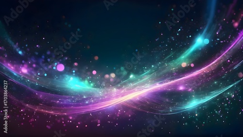 Purple and blue abstract composition with light streaks and stars forming glowing cosmic artistic gradient background for creative design use