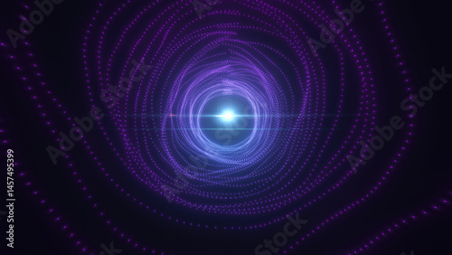 Purple and blue neon tunnel digital vortex with intricate wireframe patterns, symbolizing virtual reality, metaverse, and digital transformation concepts background