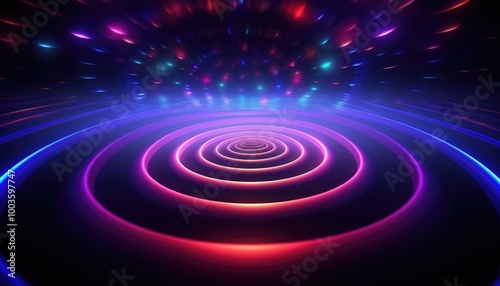 Purple and green background with red and blue running lights. Design Dark background with repetitive light running in a circle in the animation