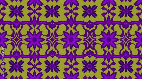 Purple and Green Floral Pattern: A seamless pattern with intricate floral motifs in shades of purple and green, perfect for adding a touch of vintage elegance and visual interest to your designs.