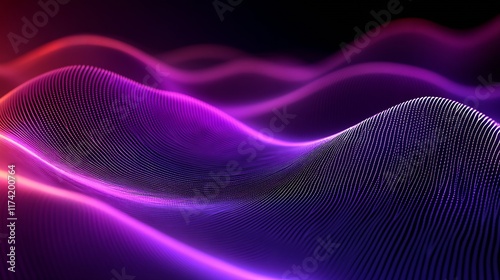 Purple and Pink Abstract 3D Wavy Lines in a Futuristic Digital Background : Generative AI