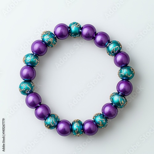 Purple and Teal Beaded Bracelet on White Background