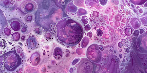 Purple bubbles in the style mixed media art. Close up of some liquid. Abstract background