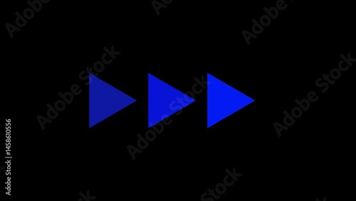 Purple chevrons pointing to the right on black background, directional motion symbol, abstract futuristic navigation concept