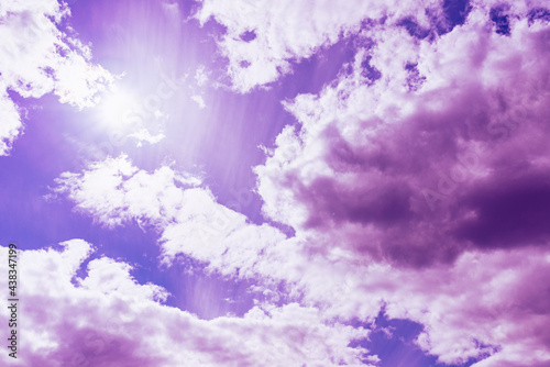 Purple clouds with beautiful blue sky,on the heaven.Amazing nature background.