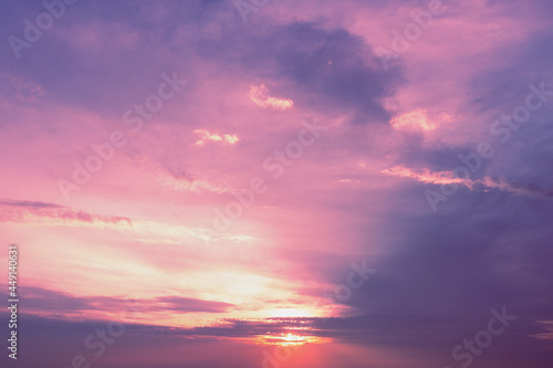 Purple cloudy sky at sunset. Sky texture. Abstract nature background
