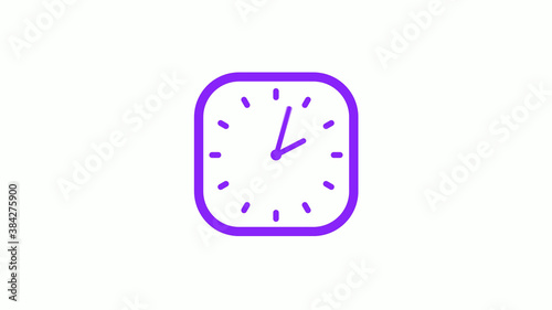 Purple color square clock icon on white background,12 hours counting down clock icon