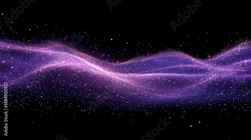 Purple cosmic wave of sparkling particles against black background