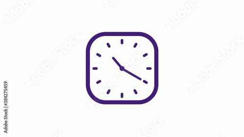 Purple dark square clock icon on white background,12 hours counting down clock icon