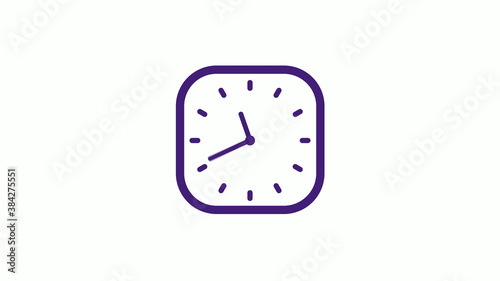 Purple dark square clock icon on white background,12 hours counting down clock icon