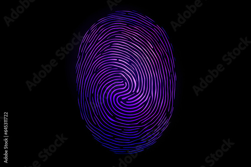 Purple Fingerprint on a Computer digital surface on a black background, Generate Ai
