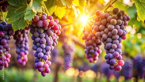 Purple Grapes Hanging on a Vine with Sunlight Filtering Through, grapevine, vineyard