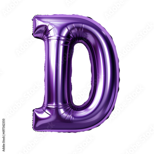 purple metallic D alphabet balloon Realistic 3D on white background.