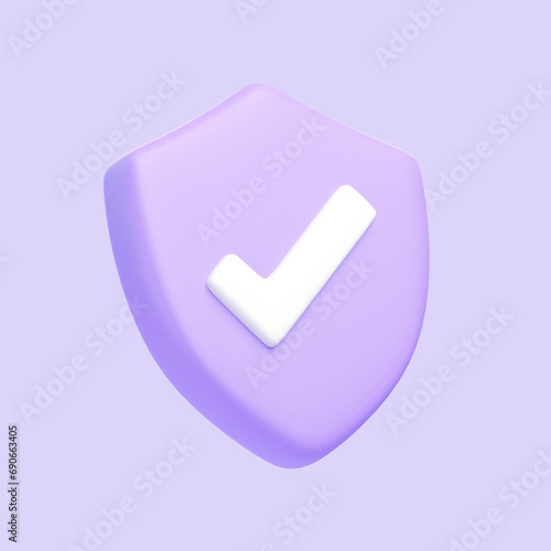 Purple Outline Shield Shape with Tick Symbol isolated on purple background. 3D icon, sign and symbol. Cartoon minimal style. 3D Render Illustration