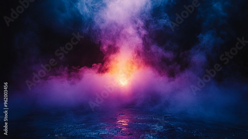 purple smoke erupts from a dark, mysterious void, symbolizing power, transformation, and the unknown. The image evokes energy, mysticism, and creative potential emerging from emptiness