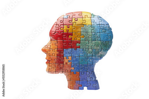 Puzzle head silhouette vector illustration, human mind concept, thinking process, brain health, isolated on transparent background