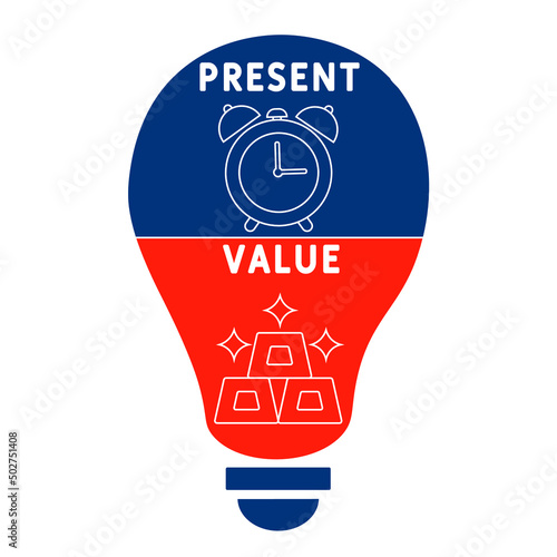 PV - Present Value acronym. business concept background. vector illustration concept with keywords and icons. lettering illustration with icons for web banner, flyer, landing page