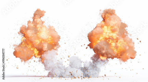 Pyrotechnics for creating explosive visual effects isolated on white background