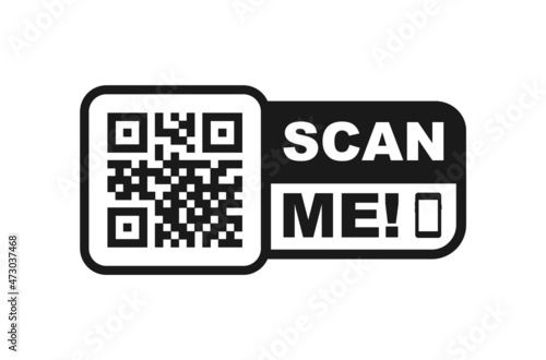 QR code scan for smartphone. QR code with inscription scan me with smartphone. Scan me icon. Scan qr code icon for payment, mobile app and identification. Vector illustration.