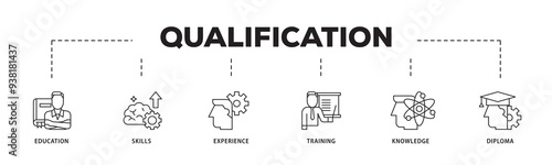 Qualification icon infographic illustration concept with icon of education, skills, experience, training, knowledge, and diploma icon png and easy to edit