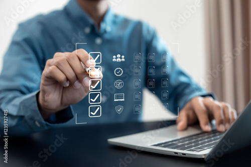 Quality assurance concept, businessman working with computers service Quality assurance, Guarantee, Standards, ISO