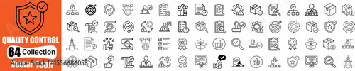 Quality control web icons set vector Illustration. Thin line icons for quality control, inspection, management, analysis, certification, standards, and compliance.