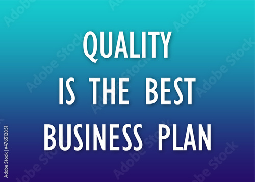 Quality is the best business plan. Motivation Business Quote Design Inspirational Concept on blue background.