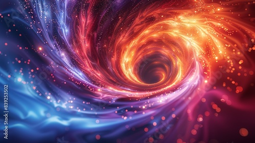 Quantum chaos visualized as swirling patterns of particles, embodying unpredictability within deterministic systems. Flat color illustration, shiny, Minimal and Simple,