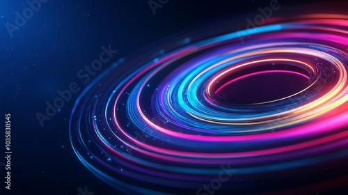 Quantum clock, rotating rings, cosmic backdrop, ethereal colors