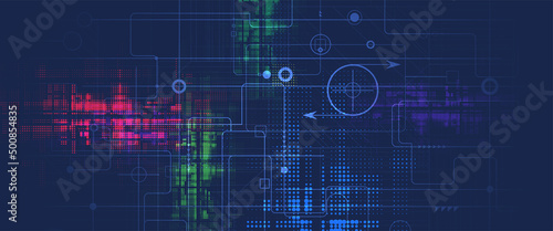 Quantum processing. Deep learning artificial intelligence. Future new technology for business or science presentation
