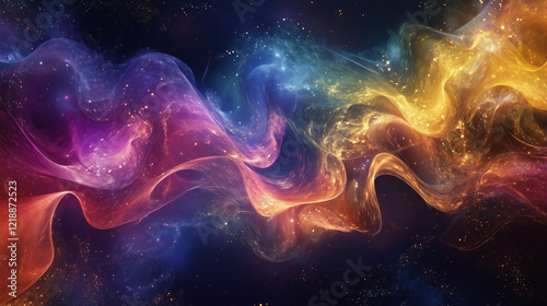 Quantum Technology. Colorful waves or particles softly dissolving into the air, creating an effect of uncertainty and dynamics, characteristic of quantum computers