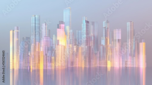 QuantumPunk Cityscape - Futuristic Skyline with Dynamic Quantum-Designed Buildings Changing Colors and Patterns | 3D Render Digital Artwork