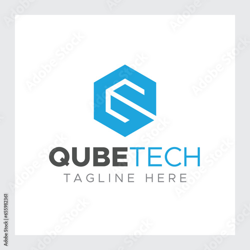 Qube Tech-letter logo Design in the form of a Hexagons shape and a cube logo with Letter monogram designs for corporate identity to business logo