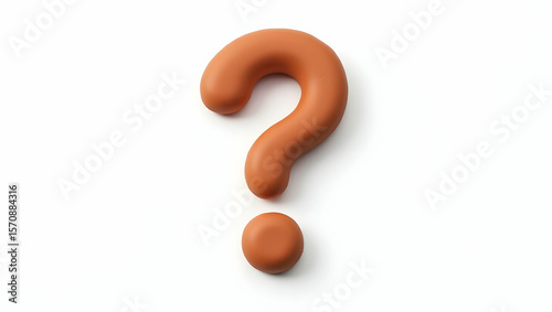 Question icon A question mark made of soft clay, designed in pliable style, shown in tilted on a pure white background