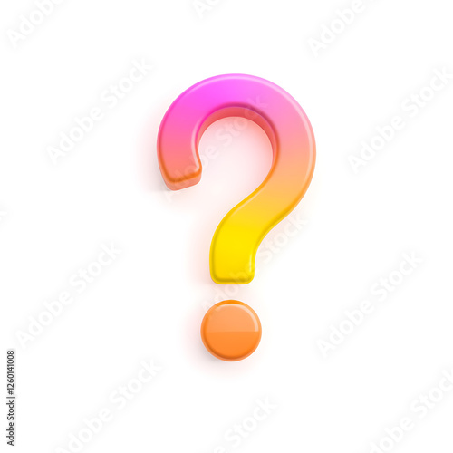 question mark 3d, with gradient color from pink to yellow, with effect around it, isolated in white background. Generative AI