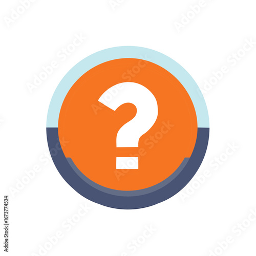 Question mark inside orange circle with blue and gray border