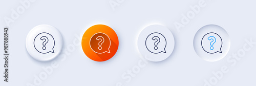 Question mark line icon. Neumorphic, Orange gradient, 3d pin buttons. Help speech bubble sign. FAQ symbol. Line icons. Neumorphic buttons with outline signs. Vector