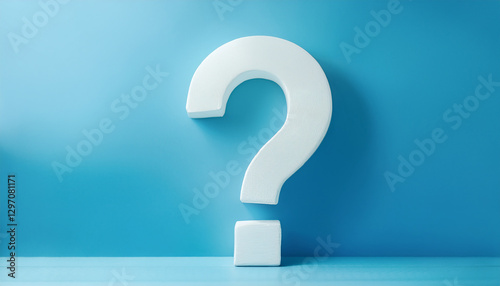 Question mark on blue background. 3D rendering. FAQ and QA. Problem solution.