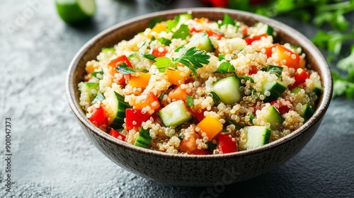 Quinoa salad with cucumber and bell peppers. A healthy and flavorful quinoa salad with fresh cucumber and bell peppers. Perfect for a light lunch or dinner.