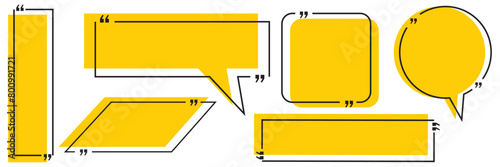Quote box frame set. Texting quote boxes. Templates of texting black line quote frames for definition, remark, and citation design. Vector illustration. Tex border collection.